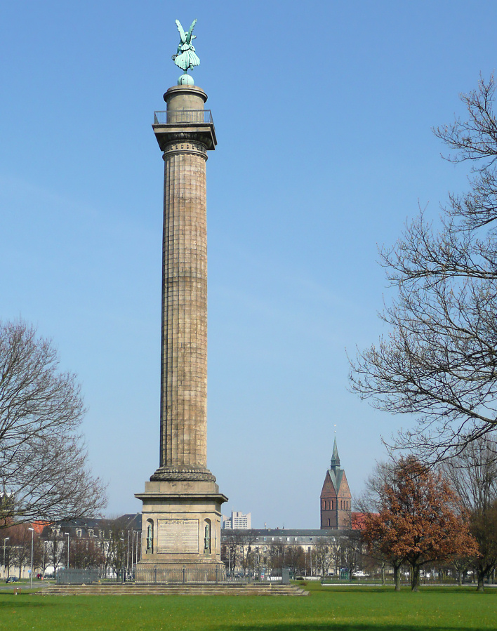 The expansive Waterloo Square with its imposing column commemorates the Battle of Waterloo. Today, the square is a green space for walkers and events - with a direct connection to Maschpark and the River Leine.