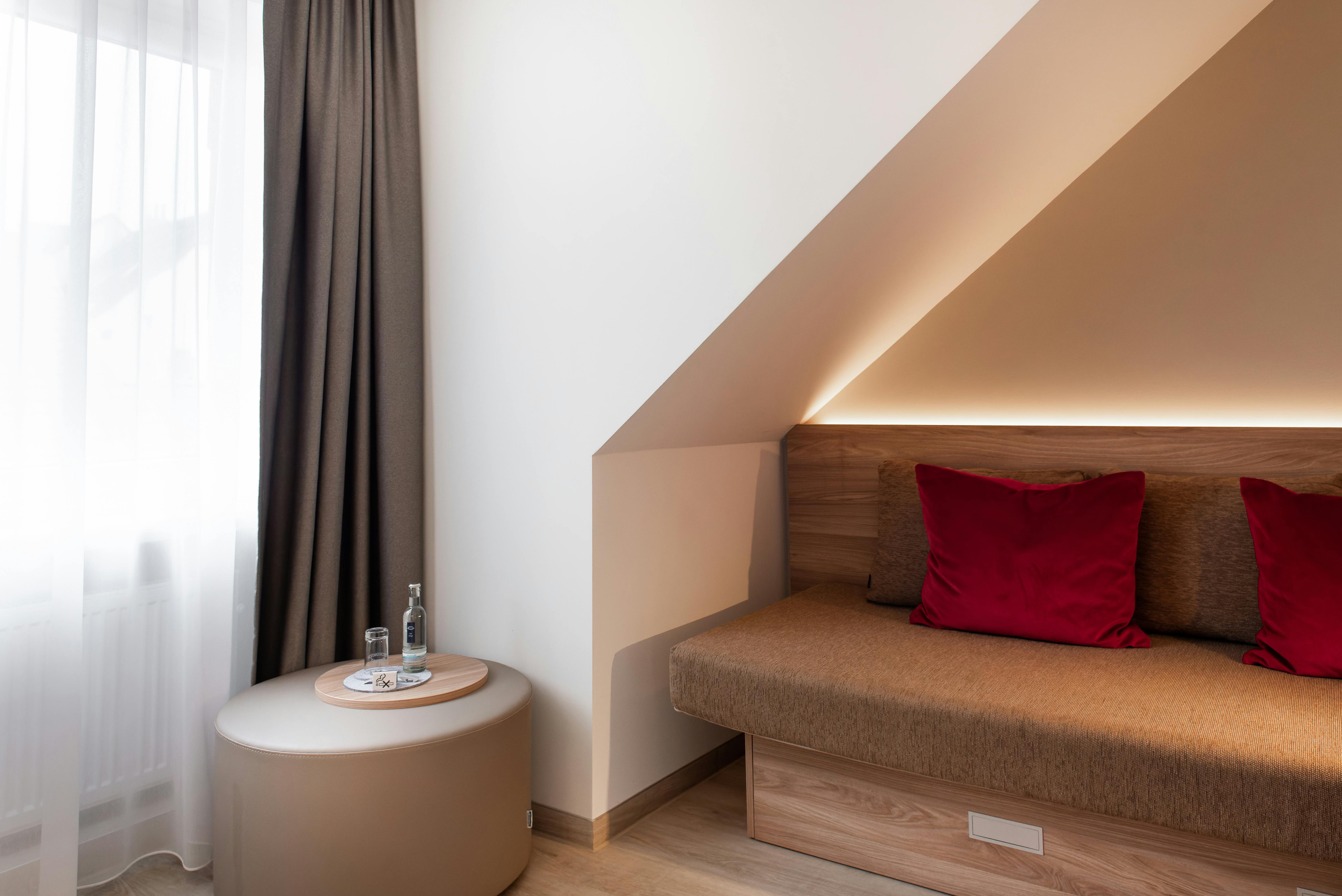 Our deluxe triple rooms offer stylish comfort for up to three people on approx. 27 m². They have the same modern design and high-quality furnishings as our deluxe double rooms - including the comfortable double bed. In addition, a separate, private area with a sofa bed offers ideal sleeping accommodation for a third person - perfect for families or friends travelling together who still value individual retreats. Facilities also include a spacious desk, a bathroom with shower, WC, flat-screen TV, free Wi-Fi, telephone, mini fridge and hairdryer. Some rooms also have a smoker-friendly balcony - for relaxing moments in between.